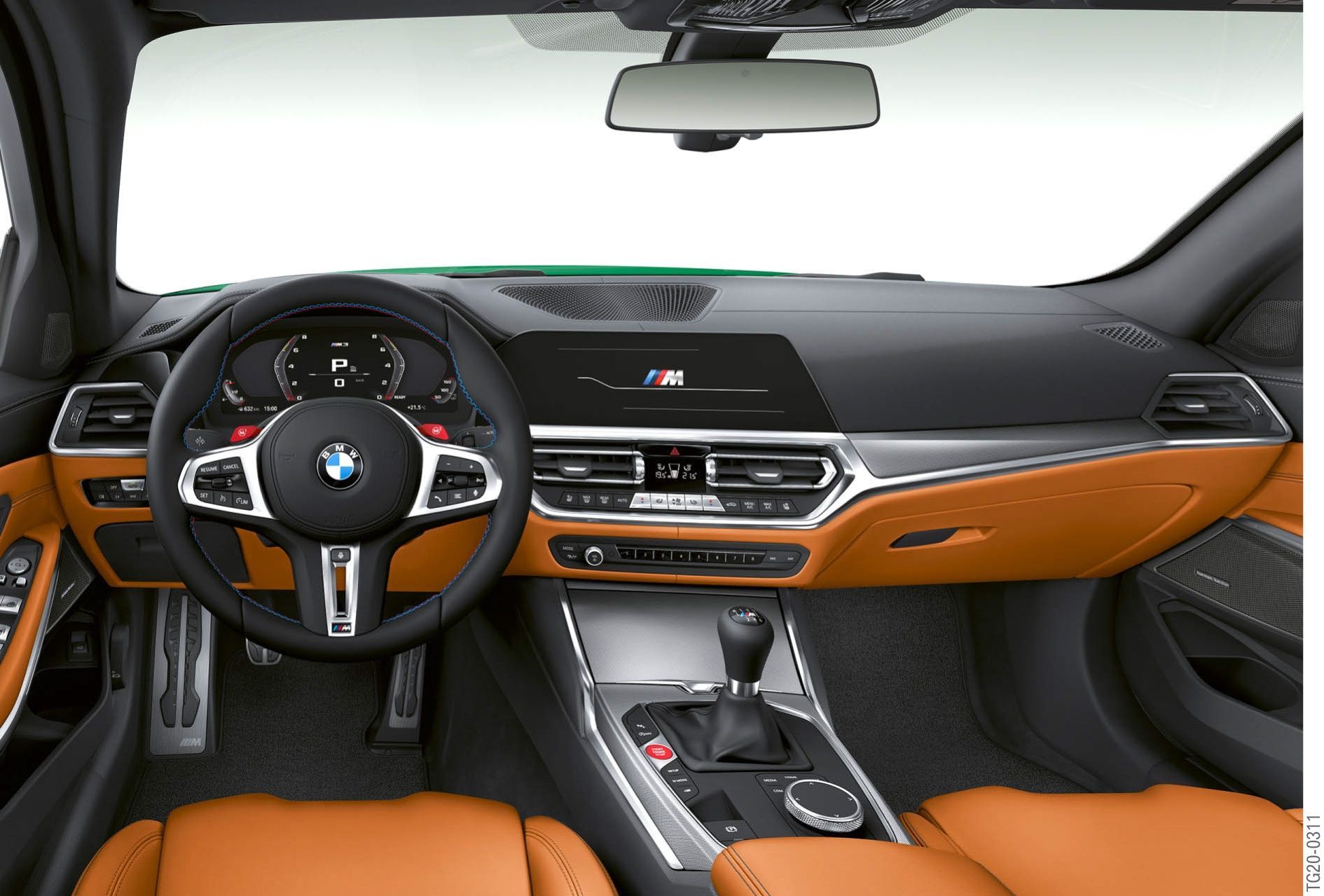 Grâce à ses appuis moulés pour les pouces, le volant M en cuir grainé à méplat assure une prise en main optimale et un contrôle précis.