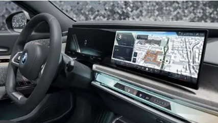 Le poste de conduite de la BMW combine design futuriste et technologie de pointe. La BMW Interaction Bar, un élément de commande multifonctions, s’étend horizontalement sur toute la largeur, offrant une expérience intuitive et élégante. Complétant cette configuration, le large écran incurvé BMW Curved Display de 14,9" assure une immersion totale dans un univers multimédia à la fois sophistiqué et fonctionnel.